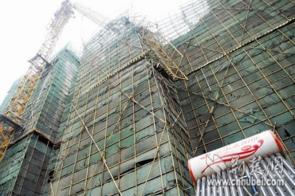 記者在黃陂區“濱水雅苑”商品房工地外看到,該樓盤主體結構已做了10多層,其高空塔吊的起重臂已折斷,砸垮了部分腳手架。在高空塔吊旁邊的工程電梯,也被砸斷,緊挨工地的多間民房被墜落的金屬物擊穿屋頂,所幸無人受傷。